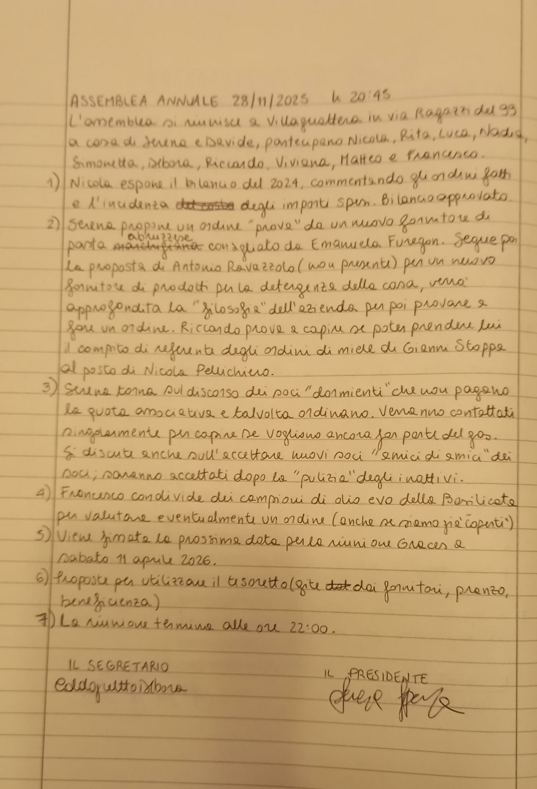 - Viene firmata la prossima data per la riunione: sabato 11 aprile 2026.